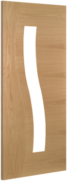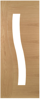 The Deanta Cadiz Prefinished Oak Glazed Internal Door is a striking contemporary design that celebrates movement, natural colour, and fluid form. Finished in real North American white oak veneer, crown cut to reveal long, complex grain patterns, the Cadiz stands out through its bold asymmetry and sculptural presence.
