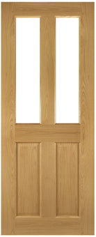 The Deanta Bury Prefinished Oak Glazed FD30 Internal Door offers classic styling combined with certified fire performance. Defined by its neatly symmetrical layout, the Bury features four bevelled-edged panels in crown cut American white oak veneer, delivering a timeless look that suits both traditional and modern interiors.