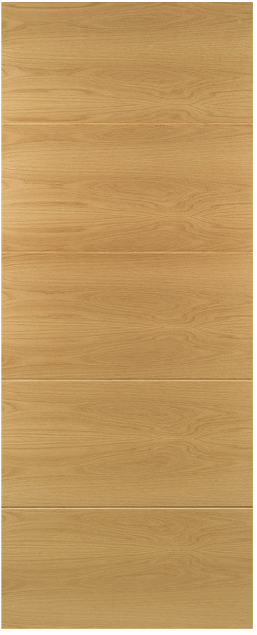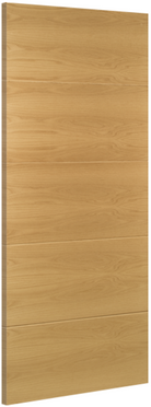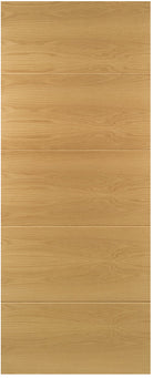 The Deanta Augusta Prefinished Oak Internal Door is a clean, contemporary design that puts natural materials front and centre. Formed from five horizontal panels, the Augusta perfectly showcases the rich character and grain variation of crown cut American white oak veneer, delivering a calm, architectural finish ideal for modern interiors.