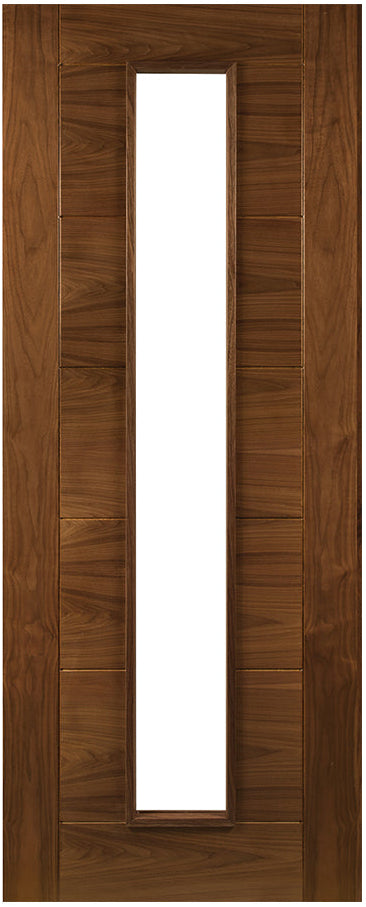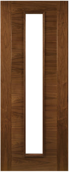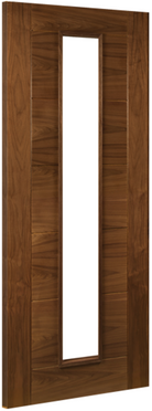 The Deanta Seville Prefinished Walnut Glazed 1L Internal Door is a bold contemporary design that celebrates the natural beauty of walnut. Rich grain patterns within the crown cut American black walnut veneer are showcased through a striking combination of vertical and horizontal panels, giving the door strong architectural presence.