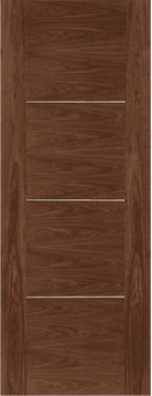 The Walnut Nova FD30 Fire Door combines a luxurious crown-cut walnut veneer with a sleek aluminium inlay strip, creating a modern, high-end design with real visual impact. Built around a fire-rated engineered core, it delivers essential 30-minute fire protection while maintaining a premium contemporary appearance.